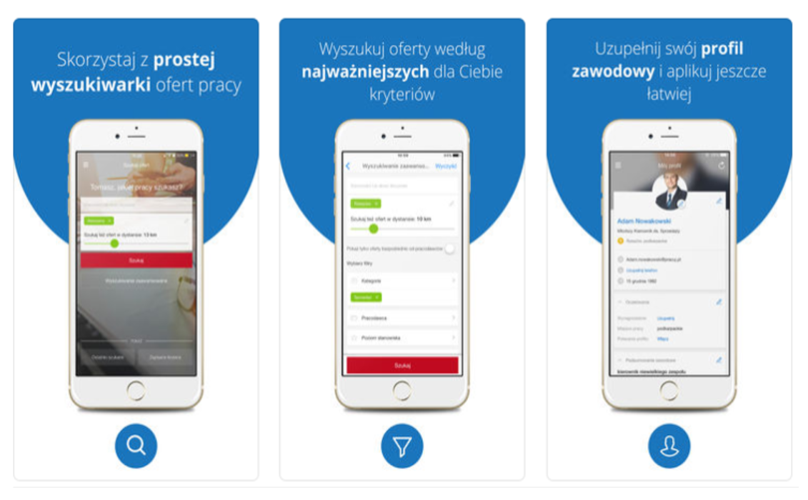 - Alerty pracy – powiadomienia o dopasowanych ofertach prosto na e-mail lub do aplikacji.